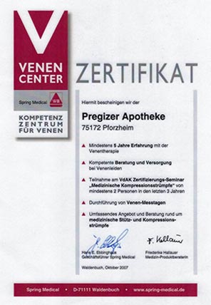 In der Pregizer Apotheke werden Kompressionsstrümpfe und Kompressionsstrumpfhosen fachmännisch nach Maß angefertigt. Idealer Zeitpunkt für die Anmessung ist der frühe Vormittag, wenn die Beine möglichst nicht geschwollen sind. Als gesetzlich Versicherter hat man Anspruch auf zwei Verordnungen von Kompressionsstrümpfen/Strumpfhosen pro Jahr, die ärztlich verordnet werden. Der Arzt legt die Kompressionsklasse fest. Je nach ärztlichem Befund, kommen stützende Knie-, Oberschenkelstrümpfe oder Stützstrumpfhosen zum Einsatz. Man kann zwischen Ware mit Spitze oder ohne Spitze wählen. Mittlerweile gibt es Kompressionsware in unterschiedlichen Farben.